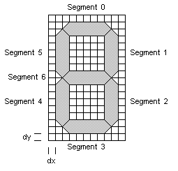 Zur Darstellung der Leuchtdiodenanzeige auf dem Bildschirm wird die Methode paint überlagert; in ihr befindet sich die Logik zur Darstellung der sieben Segmente (siehe Abbildung 33.1). In Segment7 wurden dazu drei Arrays digits, polysx und polysy definiert, die die Belegung der Segmente für jede einzelne Ziffer darstellen und die Eckpunkte jedes einzelnen Segments vorgeben.