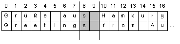 Ungewöhnlich bei der Verwendung dieser Methode ist die Tatsache, daß der Parameter end auf das erste Zeichen hinter den zu extrahierenden Teilstring verweist (siehe Abbildung 11.1). Der Rückgabewert ist also die Zeichenkette, die von Indexposition begin bis Indexposition end - 1 reicht. |